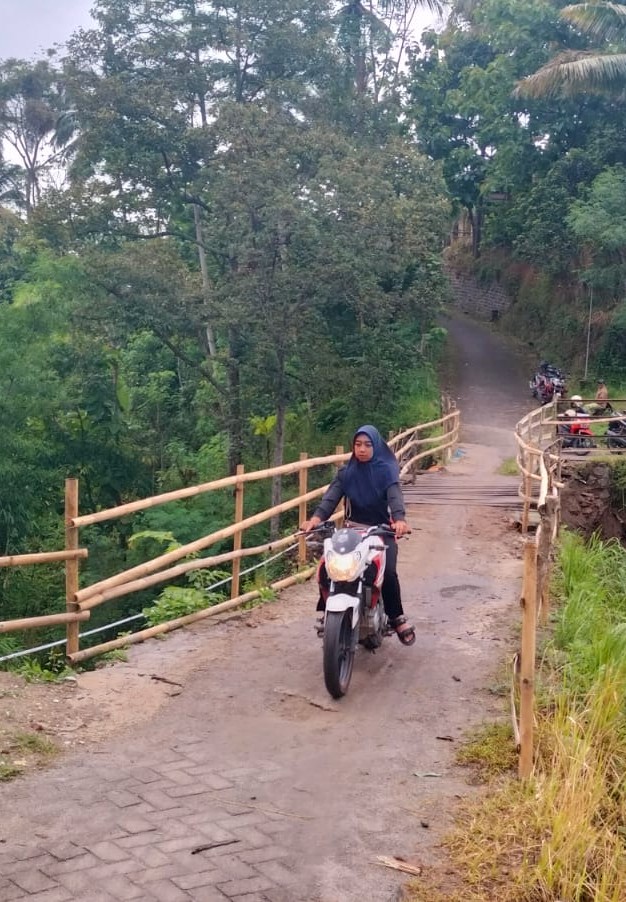 “Baru kemarin diperbaiki warga. Sebelumnya kalau nganter anak sekolah ya jalan kaki, motor nggak bisa,” kata Winarsih, pengguna jalan. Jaraknya? Lumayan jauh. Repot? Jelas. Tapi apa daya, negara sedang sibuk entah di mana.