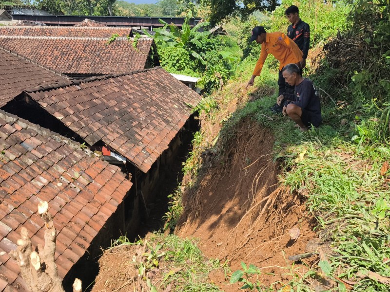 Rumah milik almarhum Suradi di RT 03 RW 02, Dusun Bulusari, Desa Jabung, Kecamatan Panekan, Magetan tertimpa material longsoran talud dari rumah warga di bagian atas,...