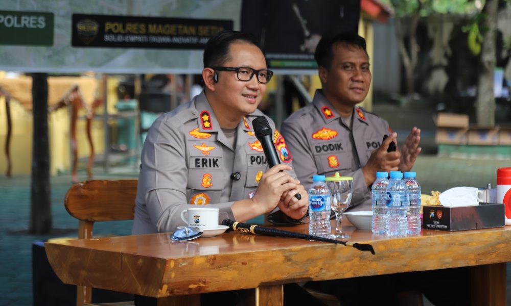 Kapolres Magetan AKBP Raden Erik Bangun Prakasa (kiri) saat memberikan sambutan Suarakumandang.com,BERITA MAGETAN. Dalam suasana santai dan penuh kekeluargaan, Polres Magetan menggelar kegiatan coffee morning atau...