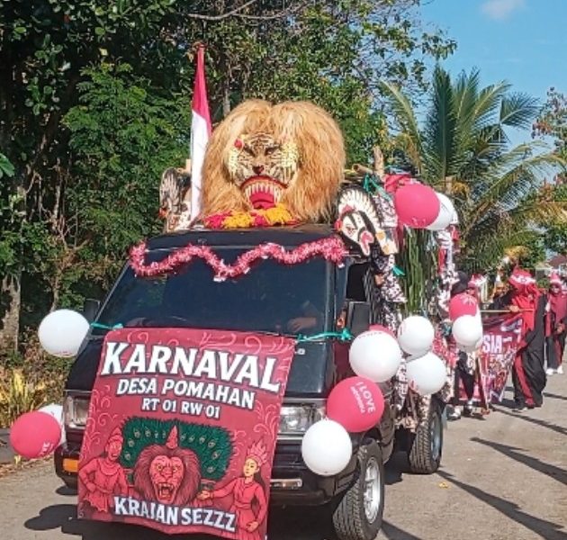 Karnaval Kemerdekaan RI, RT 1 RW 1 Dukuh Krajan Desa Pomahan Tampilkan Kepala Barongan Reog