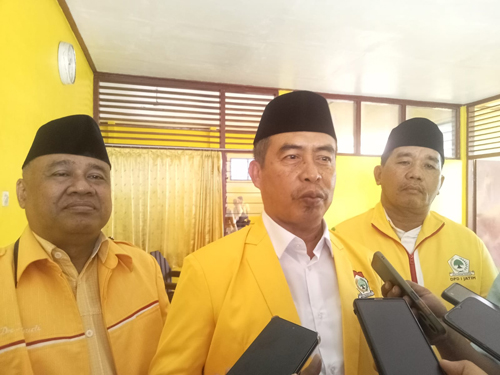 MAKIN SOLID: Bupati Madiun Hari Wuryanto juga Ketua Penasehat DPD PG Kabupaten Madiun (tengah) bersama Ketua DPD PG setempat Mashudi (kanan), yakin dengan soliditas PG makin besar.